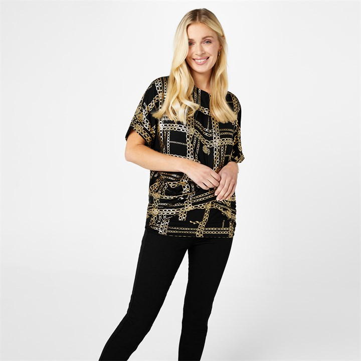 The Biba Foil Top is a great addition to your casual wardrobe, featuring a lightweight construction with a round collar and short sleeves with a regular cut for a classic fit, an all over foil foliage print gives a statement look, completed with the Biba branding.