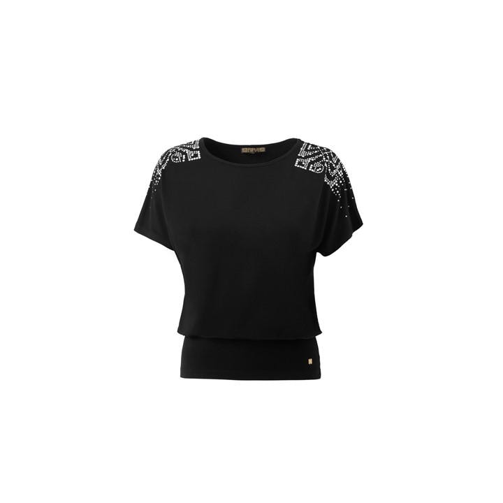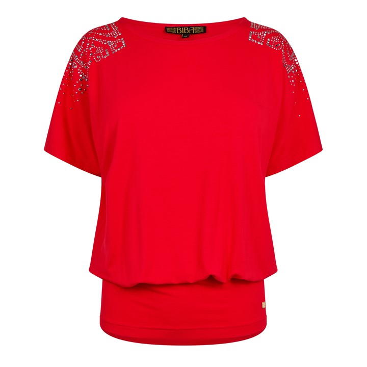 Elevate your everyday style with the Biba Heat Seal Top. Designed with a blend of comfort and glamour, this jersey top features subtle yet stunning details that make it a versatile piece for both casual and dressed-up looks. Perfect for pairing with your favorite Biba pieces, this top will effortlessly transition you from day to night. The voluminous short sleeves add a touch of drama and sophistication, creating a stylish silhouette that's both flattering and on-trend. Designed with a wide waistband, this top cinches at the waist, creating a flattering shape that complements a variety of body types. The subtle yet glamorous Biba filigree logo is heat-sealed on the sleeve, adding a touch of sparkle and signature Biba style.