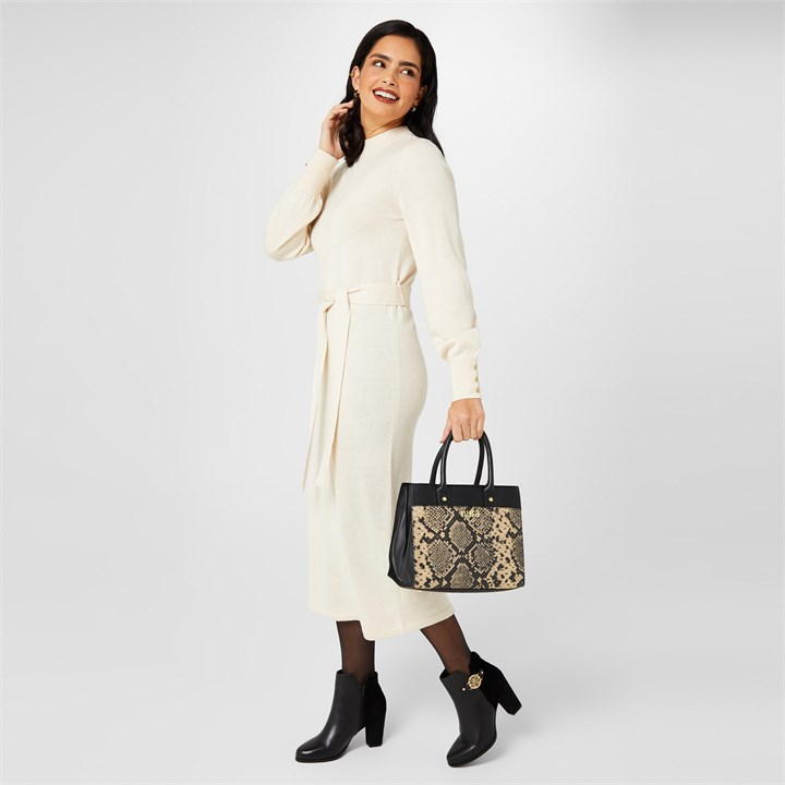 Elevate your Autumn/Winter wardrobe with the Biba Knitted Dressa??a stylish and versatile addition that effortlessly combines comfort with fashion-forward design. This dress, from the new season collection, embodies the spirit of modern elegance, featuring subtle Biba branding that adds a touch of sophistication. The dress is designed to flatter with its removable belt, allowing you to accentuate your silhouette. Its midi length offers a chic and timeless appeal, suitable for various occasions. Available in both plain and jacquard zebra options, this dress pairs seamlessly with the latest AW Biba accessories, making it a versatile and fashion-forward choice for the season.