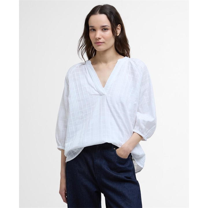 Drape yourself in understated opulence with the Barbour Heidi Top. Designed with a notch neckline and raglan sleeves for an elegant flow, the tartan neck tape is a nod to Barbour's distinct brand heritage. Complete with a detachable cami for versatile wearing options, this top is perfect for staying light and breezy in summer, no matter the occasion.
