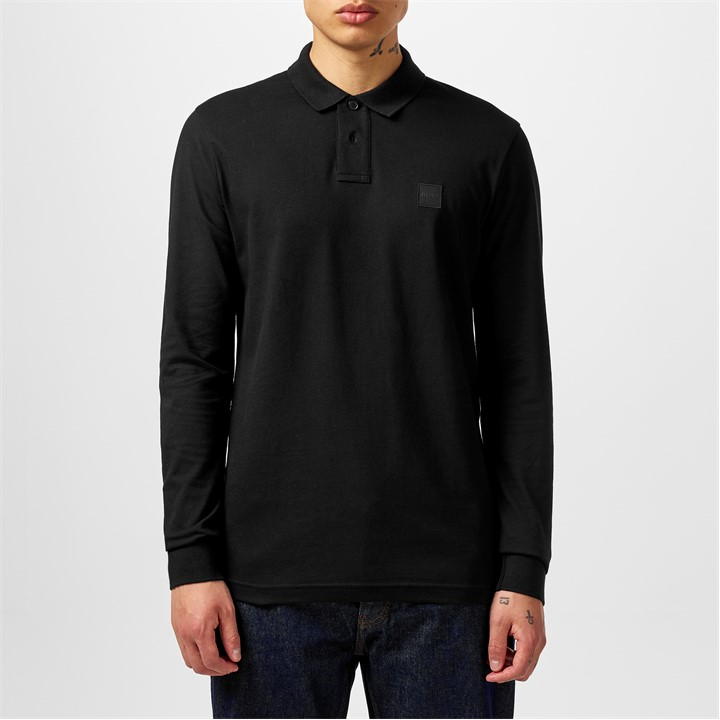 Upgrade your smart-casual wardrobe with the BOSS Long Sleeve Polo Shirt. This classic silhouette features ribbed cuffs and a traditional polo collar for a refined finish, while the sleek solid colourway makes it easy to style. Finished with a tonal BOSS logo on the chest, ita??s perfect for layering on cooler days, whether you're heading to the office, dinner, or a weekend event.