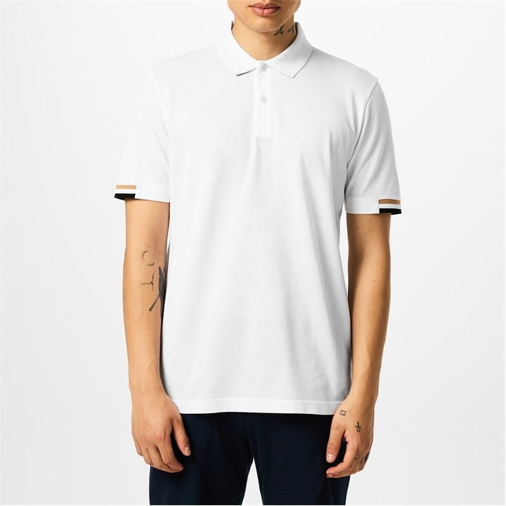 Timeless design meets modern detailing in this BOSS polo shirt. The clean lines and classic silhouette of the Parlay polo create an effortless aesthetic that works across casual and smart-casual occasions. Subtle design elements include contrast trim detailing at the sleeve cuffs, adding a contemporary touch to this wardrobe essential.