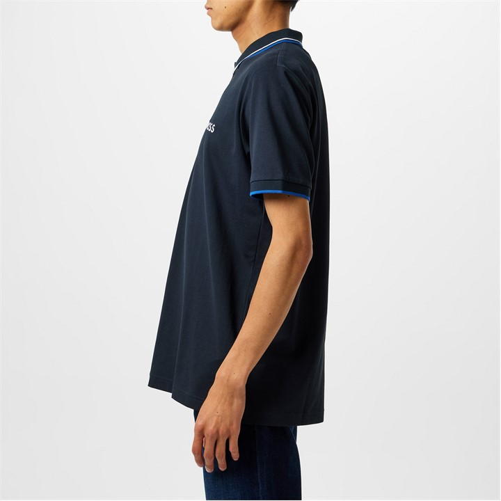 Premium cotton construction defines this timeless polo shirt from BOSS. A classic design featuring contrast tipping at the collar and cuffs creates a sharp look, while the embroidered BOSS logo adds signature branding. The regular fit and breathable fabric make this piece a go-to choice for both casual outings and active pursuits.