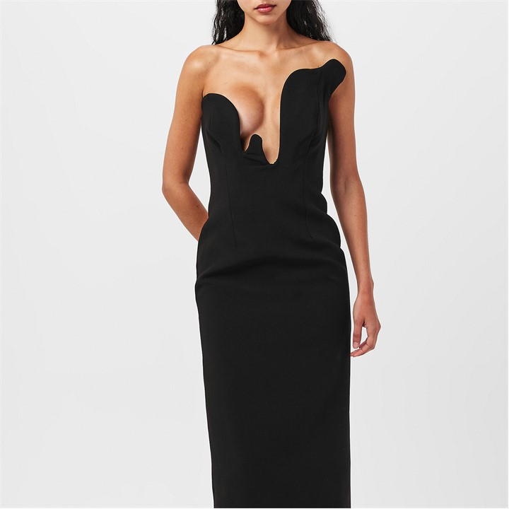 The Rosalyn Midi Dress is an occasion wear moment. It features a strapless, midi-length silhouette with an abstract wire design, boning through the bodice and back split for movement.
